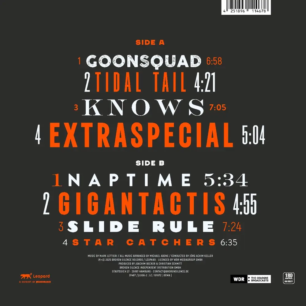 In einer explosiven Mischung aus Fusion, Funk und Jazzrock entfalten sich Lettieris Kompositionen in einem neuen, orchestralen Gewand – voller Energie, Groove und musikalischer Tiefe. Die Arrangements stammen von keinem Geringeren als Michael Abene, der mit seinem Gespür für Klangfarben und Dynamik das Zusammenspiel zwischen Big Band und dem Gitarrenvirtuosen auf ein neues Level hebt. Mit Tracks wie »Star Catchers«, »Tital Tail«, »Naptime«, »Goonsquad« oder »Seuss Pants« zeigt das Album eindrucksvoll, wie moderne Big Band Musik klingen kann – voller Groove, Attitüde, rhythmischer Komplexität und mitreißender Spielfreude.